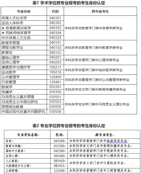 (四)是否屬于跨專業報考由我校認定,跨專業報考的考生身份認定見表1、表2。