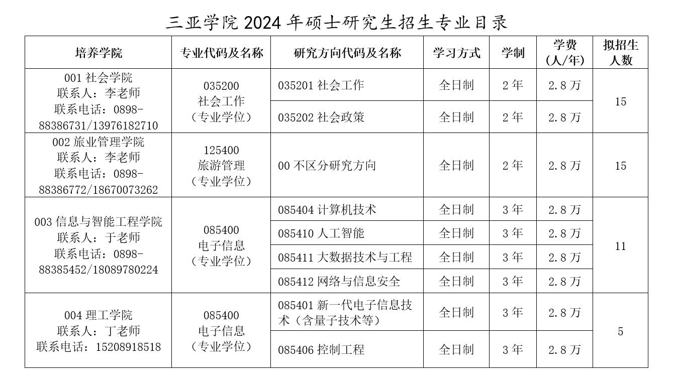 以上就是“2024考研招生簡章:三亞學院2024年碩士研究生招生簡章”,更多相關信息,請持續關注本網站!