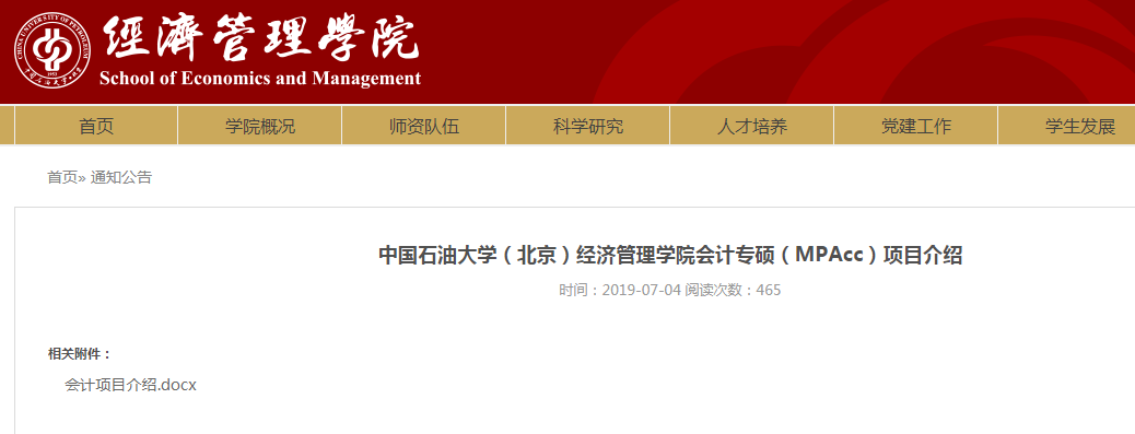以上就是“中國(guó)石油大學(xué)(北京)經(jīng)濟(jì)管理學(xué)院會(huì)計(jì)專(zhuān)碩(MPAcc)項(xiàng)目介紹(招生簡(jiǎn)章)”的全部?jī)?nèi)容!更多2020年招生簡(jiǎn)章,盡在“招生簡(jiǎn)章”欄目!