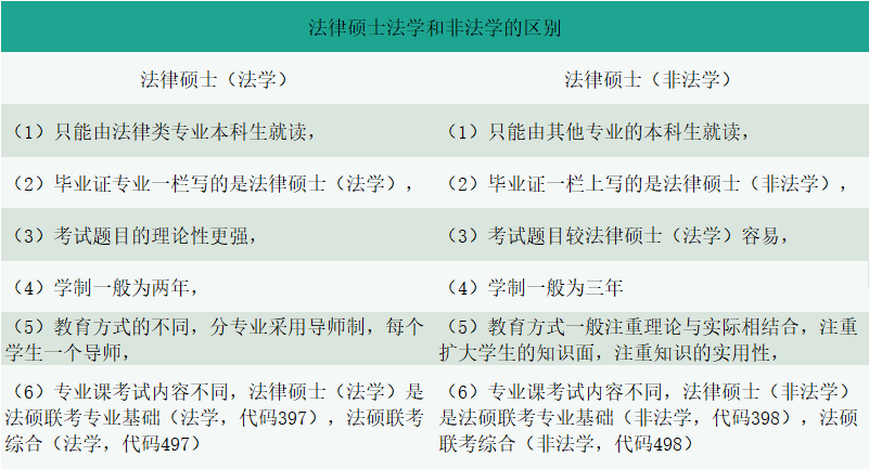 法律碩士(非法學):畢業(yè)之后主要從事于立法、司法、行政執(zhí)法、法律服務和公共事務以及經(jīng)濟管理等實際工作。