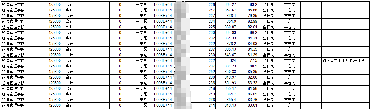 2020年會計專碩全日制擬錄取情況如下: