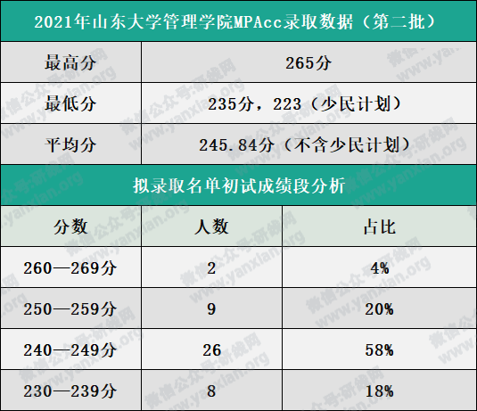 山東大學(xué)管理學(xué)院2021年非MBA類碩士研究生招生復(fù)試成績及擬錄取情況公示(第二批):會計專碩擬錄取46人(包含少民計劃1人)。