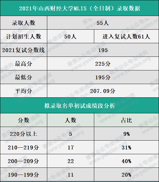 山西財(cái)經(jīng)大學(xué)信息學(xué)院2021年全日制圖書情報(bào)碩士研究生擬錄取55人。