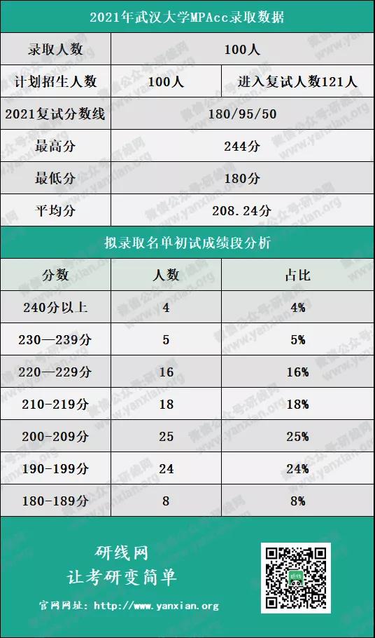 2021年武漢大學MPAc計劃招生人數100人,進入復試人數121人,擬錄取碩士研究生100人。