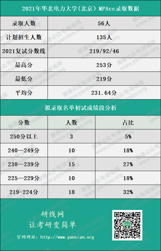 2021年華北電力大學(北京)MPAcc全日制招生人數35人,非全日制招生人數100人,擬錄取碩士研究生56人(不包含士兵計劃等特殊類型招生計劃)。