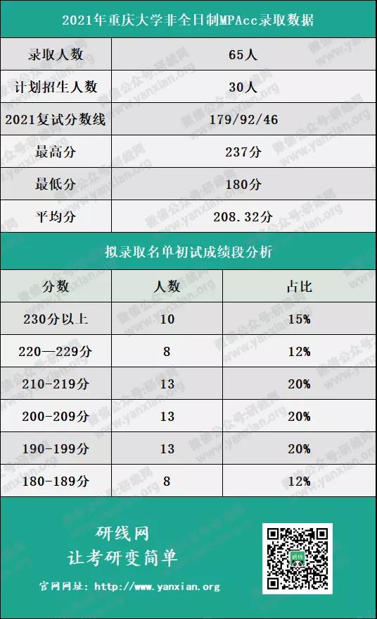 2021年重慶大學非全日制MPAcc計劃招生人數(shù)30人,擬錄取碩士研究生65人。