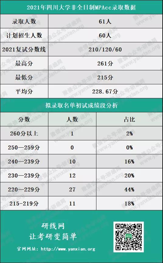 2021年四川大學非全日制MPAcc計劃招生人數(shù)61人,擬錄取碩士研究生60人。