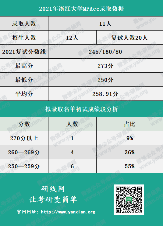 浙江大學(xué)管理學(xué)院2021年MPAcc計(jì)劃招生人數(shù)為12人,復(fù)試人數(shù)為20人,擬錄取人數(shù)為11人。