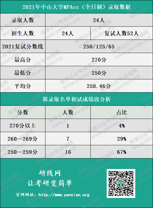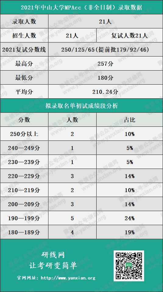 中山大學(xué)管理學(xué)院全日制會(huì)計(jì)碩士2021年招生計(jì)劃為24人,復(fù)試人數(shù)為52人,擬錄取人數(shù)為24人。