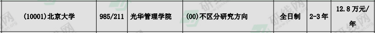 全日制:學制為2-3年,學費為12.8萬元/年。