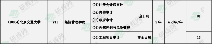 北京交通大學2021年審計碩士專業全日制擬錄取人數為81人。