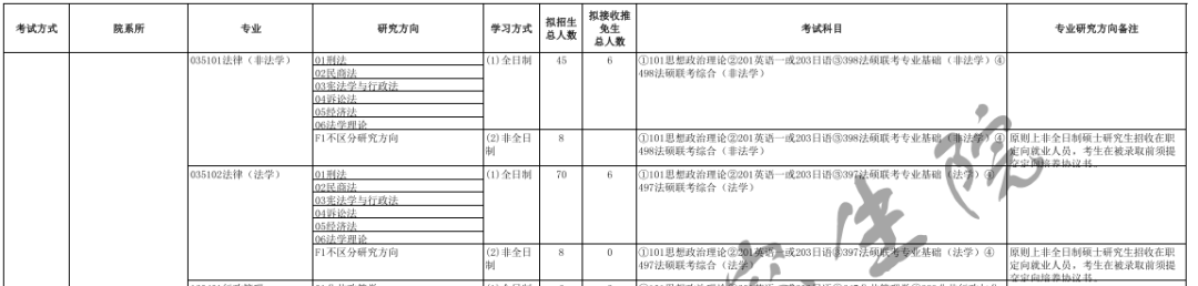 2021年法碩(非法學)全日制招生人數是45人,非全日制招生人數8人
