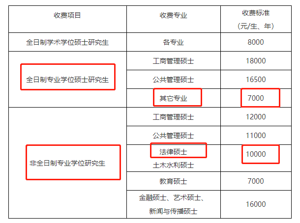 法碩(非法學)全日制:學制為3年,學費7000元/生/年