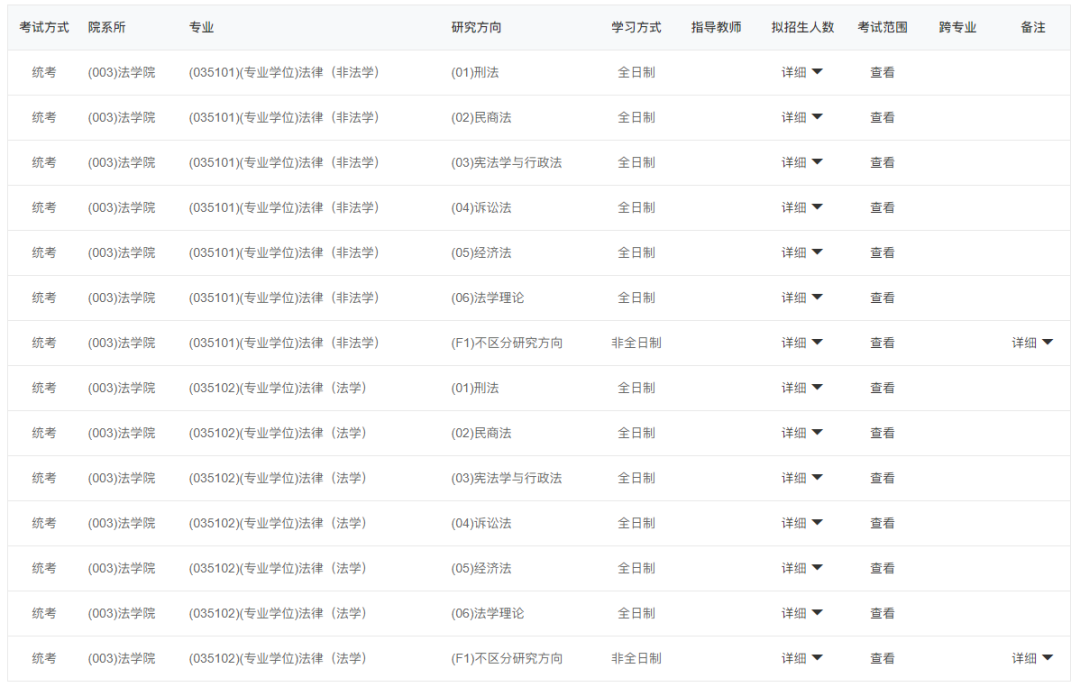 法碩(法學)非全日制:學制為3年,學費10000元/生/年