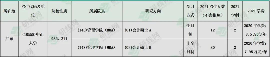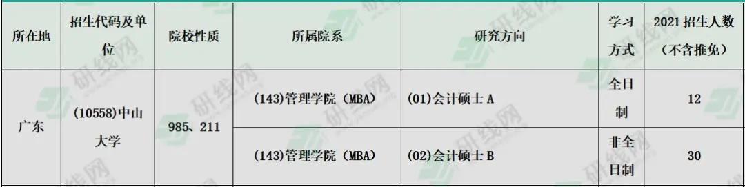 中山大學(xué)2021年全日制會計專碩計劃招生12人會計專碩計劃招生