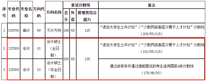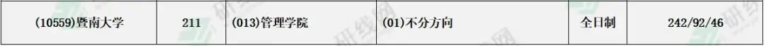 暨南大學(xué)2021年會計專碩復(fù)試分數(shù)線為242/92/46