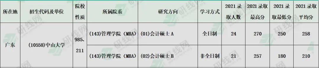 中山大學(xué)2021年會計專碩復(fù)試分數(shù)線:250/125/65,非全日制提前批分數(shù)線179/92/46