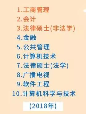 由此可見,工商管理、會計、法律碩士(非法學)連續(xù)數(shù)年成為報考專業(yè)的前三甲,依然是最熱門的專業(yè)。