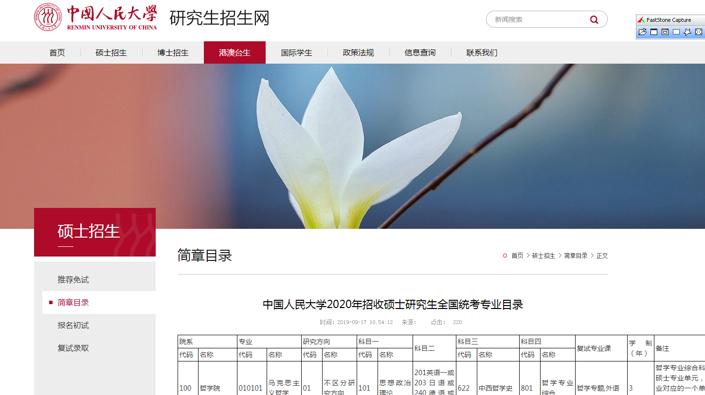 以上就是“中國人民大學2020年招收碩士研究生全國統考專業目錄”的全部內容!祝您考研成功!