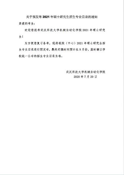 以上就是“2021考研專業目錄:武漢科技大學機械自動化學院2021年碩士研究生招生專業目錄”的全部內容!祝您考研成功!