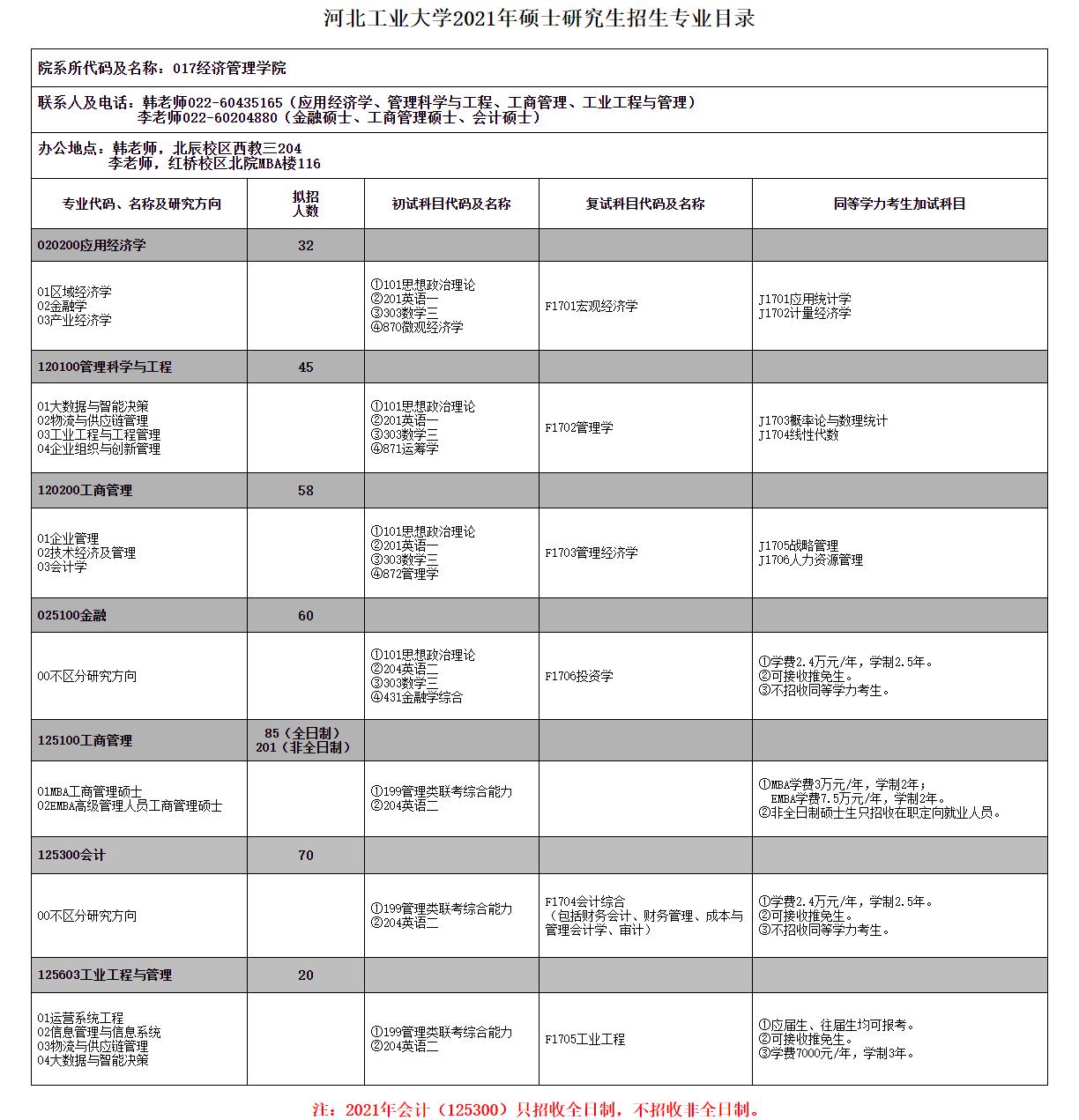 以上就是‘’2021考研專業目錄:河北工業大學經濟管理學院2021年碩士研究生招生專業目錄”的全部內容!祝您考研成功!更多考研動態、院校資訊請持續關注研線網!