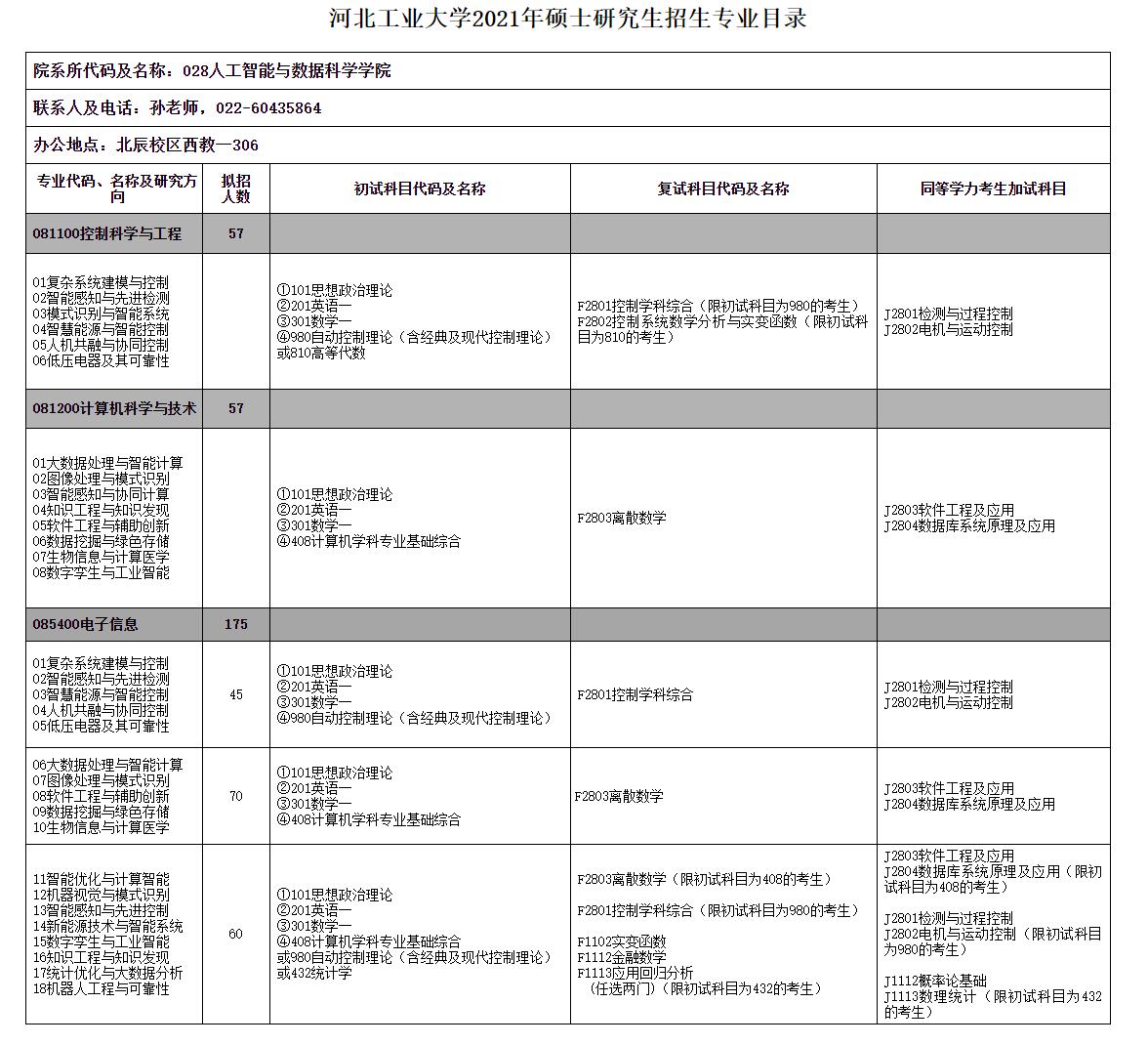 ‘’2021考研專業(yè)目錄:河北工業(yè)大學(xué)人工智能與數(shù)據(jù)科學(xué)學(xué)院2021年碩士研究生招生專業(yè)目錄”的相關(guān)內(nèi)容,希望對(duì)大家有所幫助!