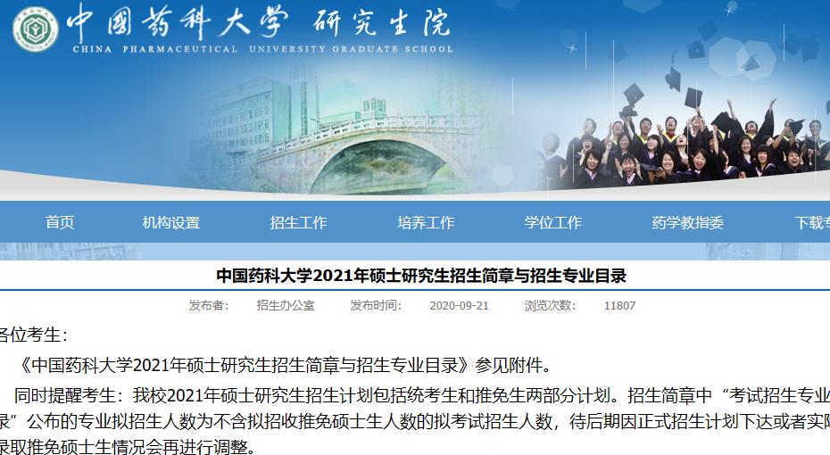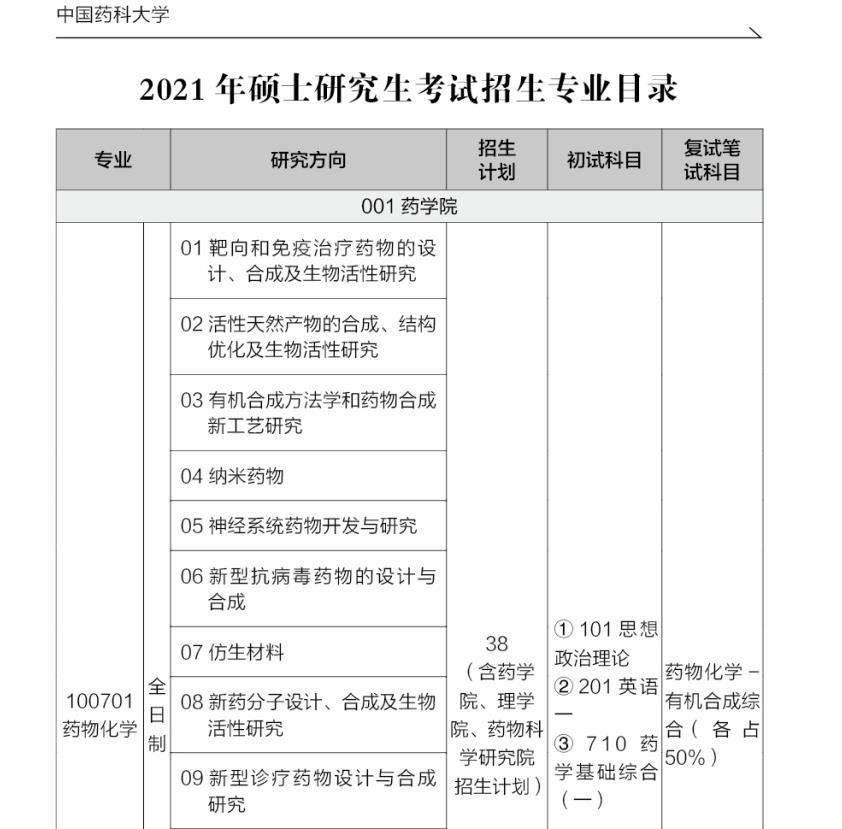 以上就是“2021考研專業目錄:中國藥科大學2021年碩士研究生招生專業目錄 ”的相關內容,更多考研信息,請持續關注。