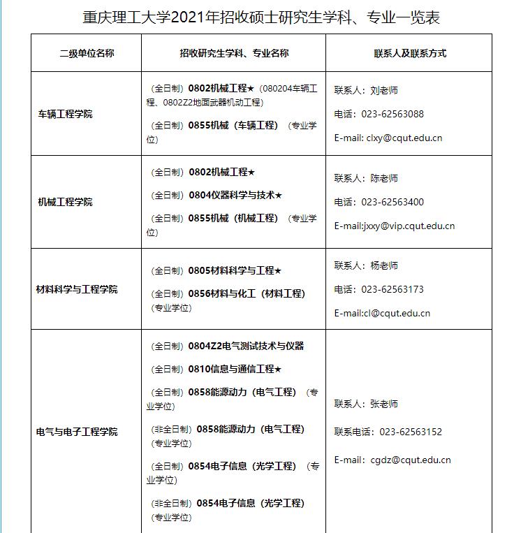 以上是為考生整理的“2021考研專業目錄:重慶理工大學2021年招收碩士研究生學科、專業一覽表”的相關內容,希望對2021考研的同學們有所幫助。