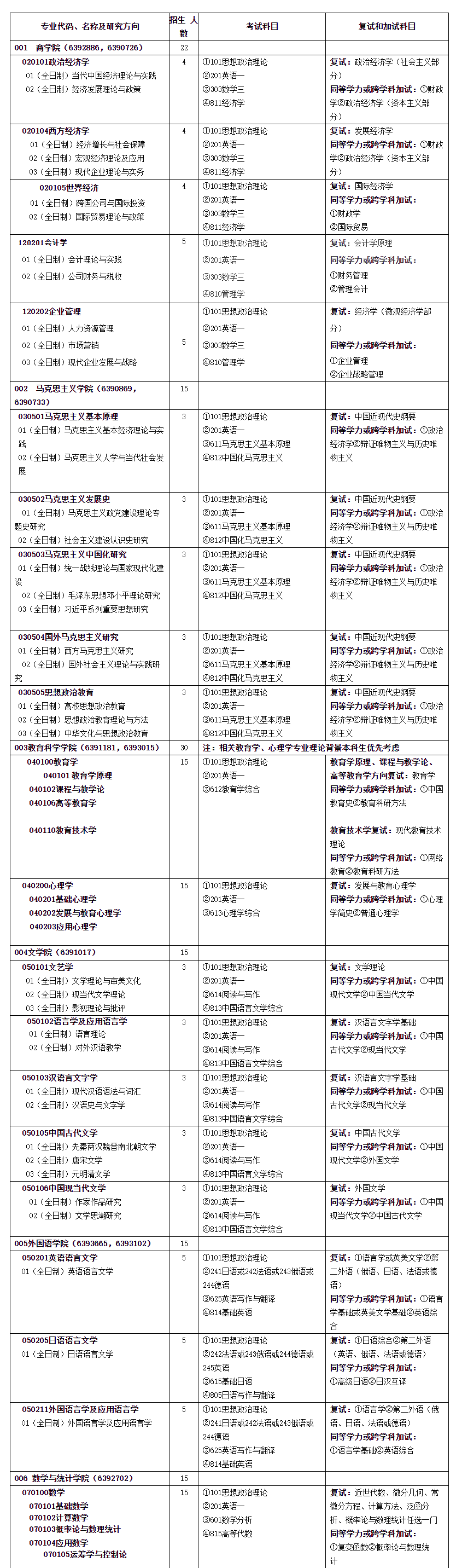 備注:根據(jù)教育部教學(xué)函[2020]8號文件的精神,2021年全日制碩士研究生招生專業(yè)目錄不指定參考書目和參考資料,考生如需對我校自命題科目的考試范圍進行咨詢,請與相關(guān)招生學(xué)院聯(lián)系。