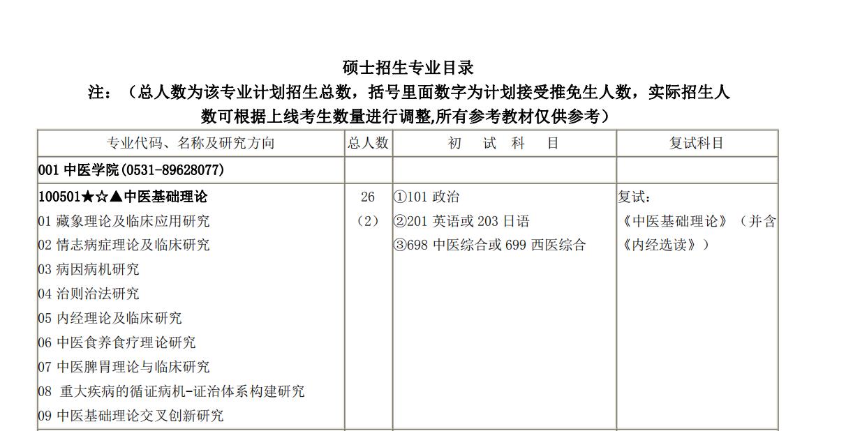 2021考研專業目錄:山東中醫藥大學2021年碩士研究生招生專業目錄