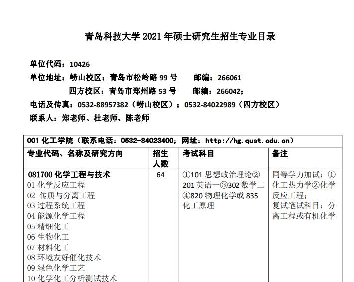 以上就是“2021考研專業目錄:青島科技大學2021年碩士研究生招生專業目錄的全部內容!祝您考研成功!