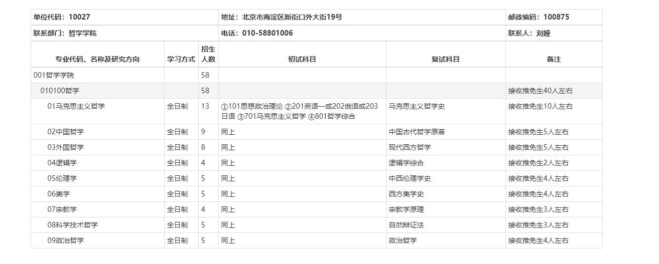 2021考研專業目錄:北京師范大學哲學學院2021年碩士研究生招生專業目錄
