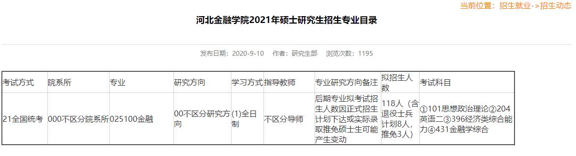 2021考研專業(yè)目錄:河北金融學院2021年碩士研究生招生專業(yè)目錄