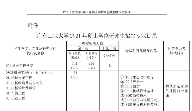 2021考研專業目錄:廣東工業大學2021年碩士研究生招生專業目錄