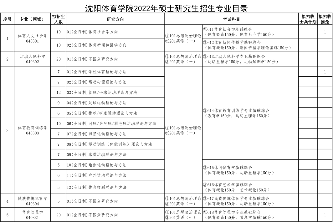 2022考研專(zhuān)業(yè)目錄:沈陽(yáng)體育學(xué)院2022年碩士研究生招生專(zhuān)業(yè)目錄帶考試科目