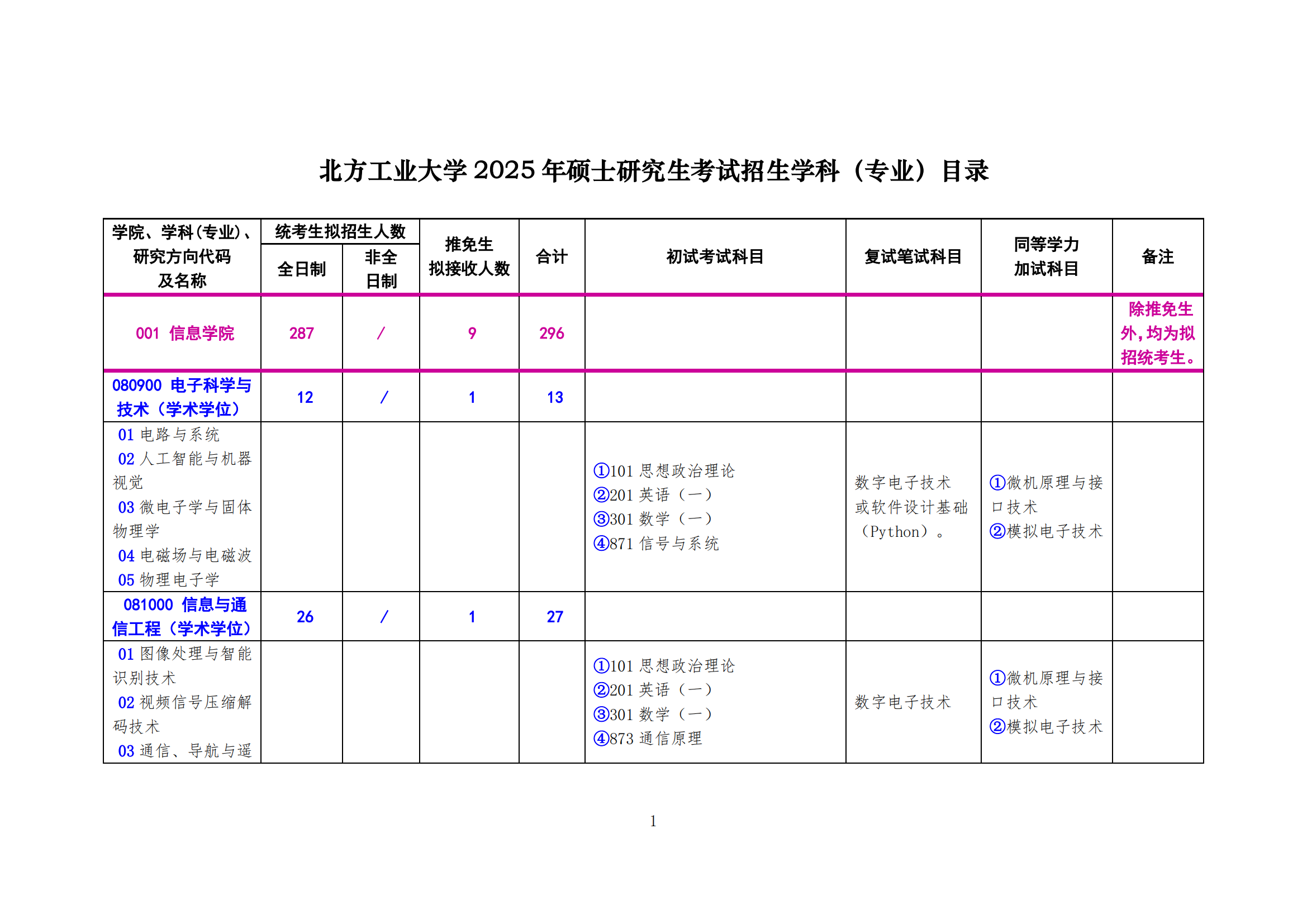 以上就是2025考研專業目錄:北方工業大學2025年碩士研究生考試招生學科(專業)目錄的全部內容!祝您考研成功!更多相關信息請持續關注本網站!