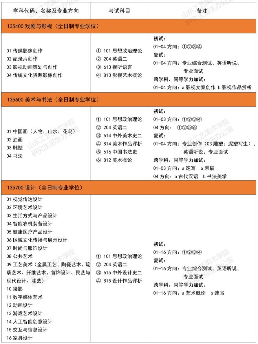 以上就是“2025考研專業目錄:山東工藝美術學院2025年碩士研究生招生專業目錄”的全部內容!祝您考研成功!更多相關信息請持續關注本網站!