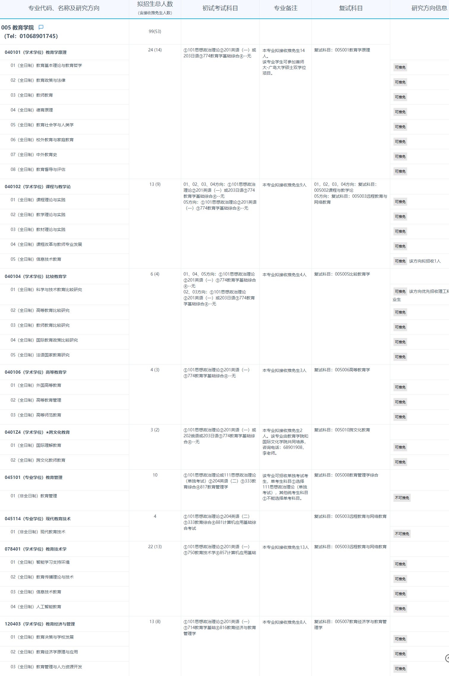 2025考研專業目錄:首都師范大學教育學院2025年招收攻讀碩士學位研究生專業目錄